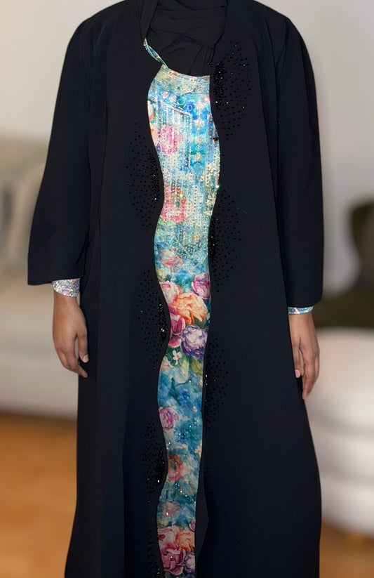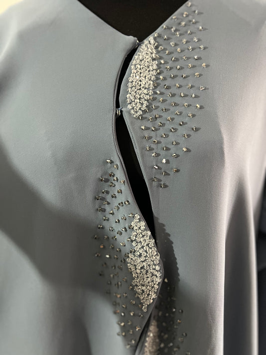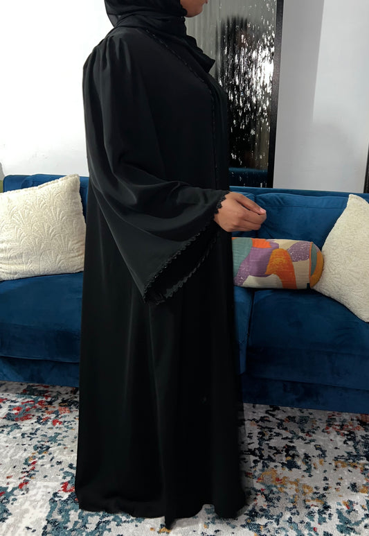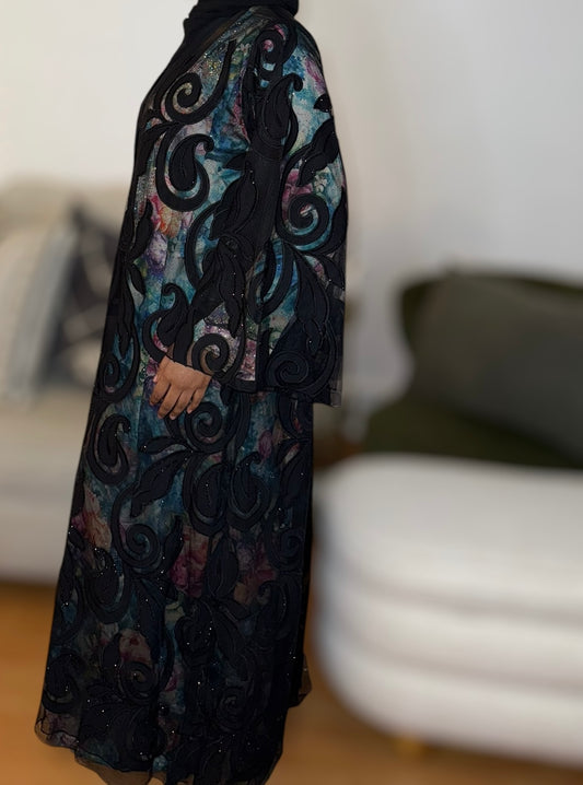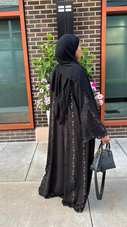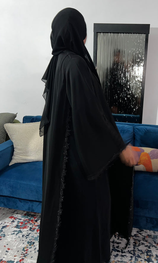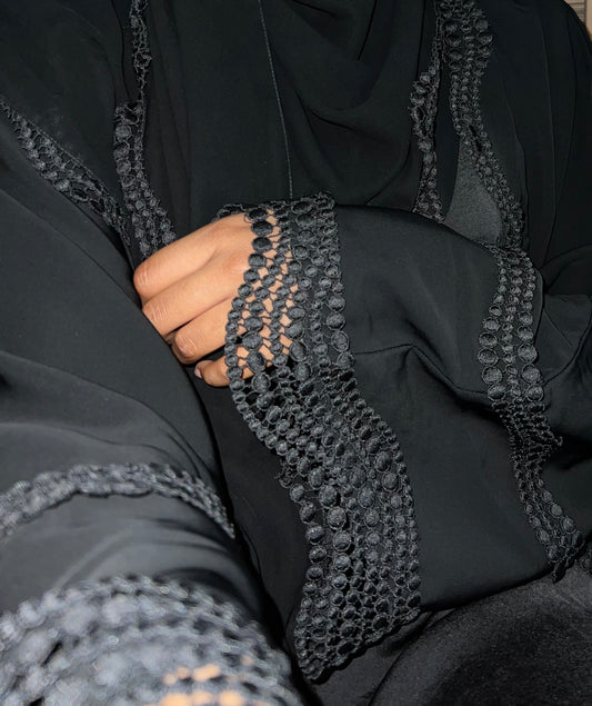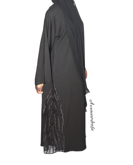 A Selection of Abayas embroidered with Lace and Stone detailing for special occasions : Eid, Nikkah, Anniversarys and more.